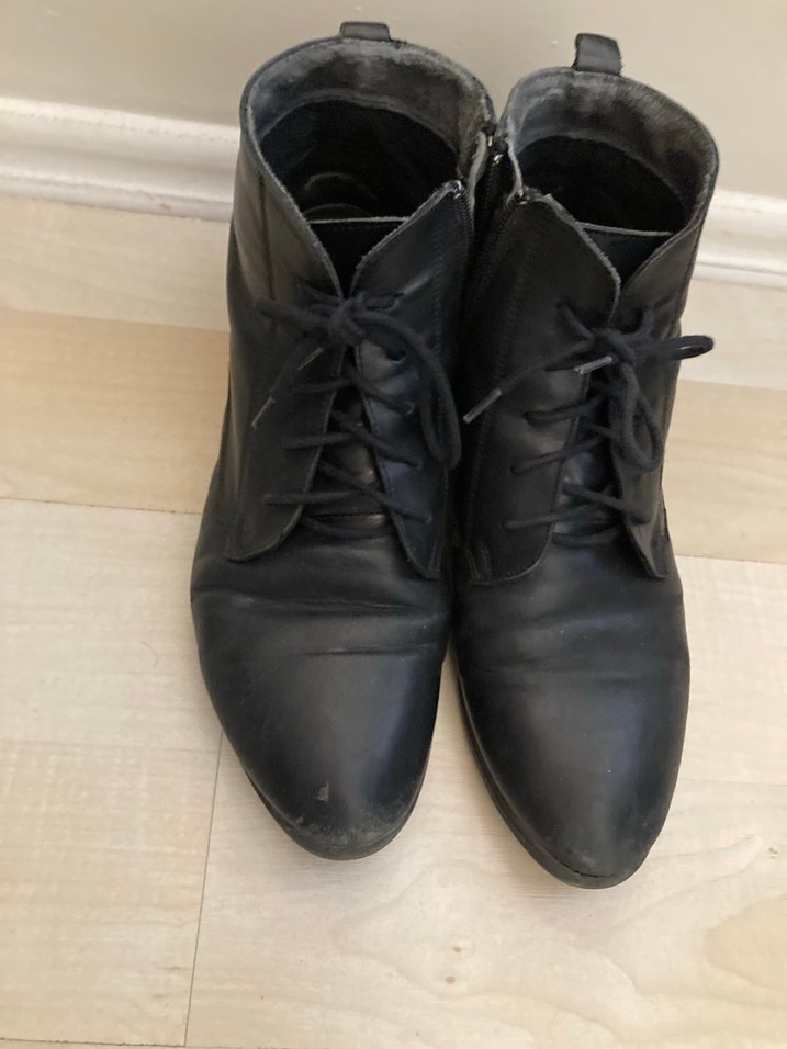 İnci marka siyah deri kadın bot. Severek kullandım, kullanıma bağlı bazı deformeler mevcuttur (fotoğraflarda detaylı olarak gösterilmiştir). Bunun dışında herhangi bir sorunu yoktur. İnci markasının rahatlığını ve şık tasarımını bilen bilir. Marka artık üretimde olmadığı için bu tarz ve konforda ürün bulmak oldukça zor.