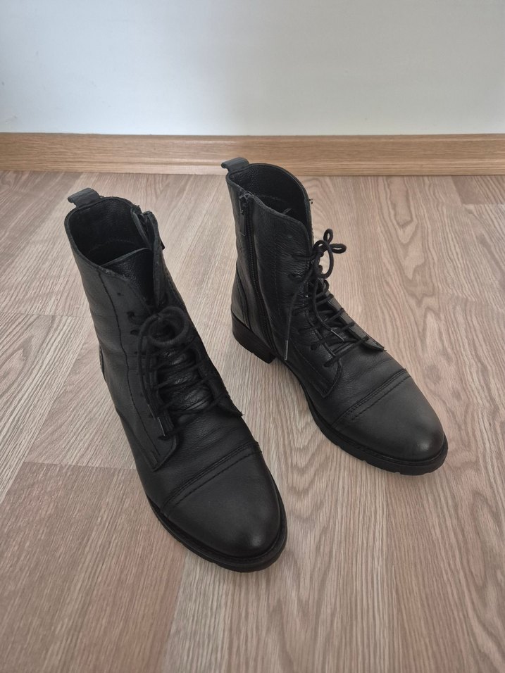 Siyah deri kadın bot, ürün görseldeki gibi sağlam, birkaç kez giyildi.