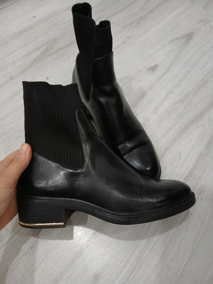 Siyah Deri Kadın Bot, Kalın Topuk, Tokalı