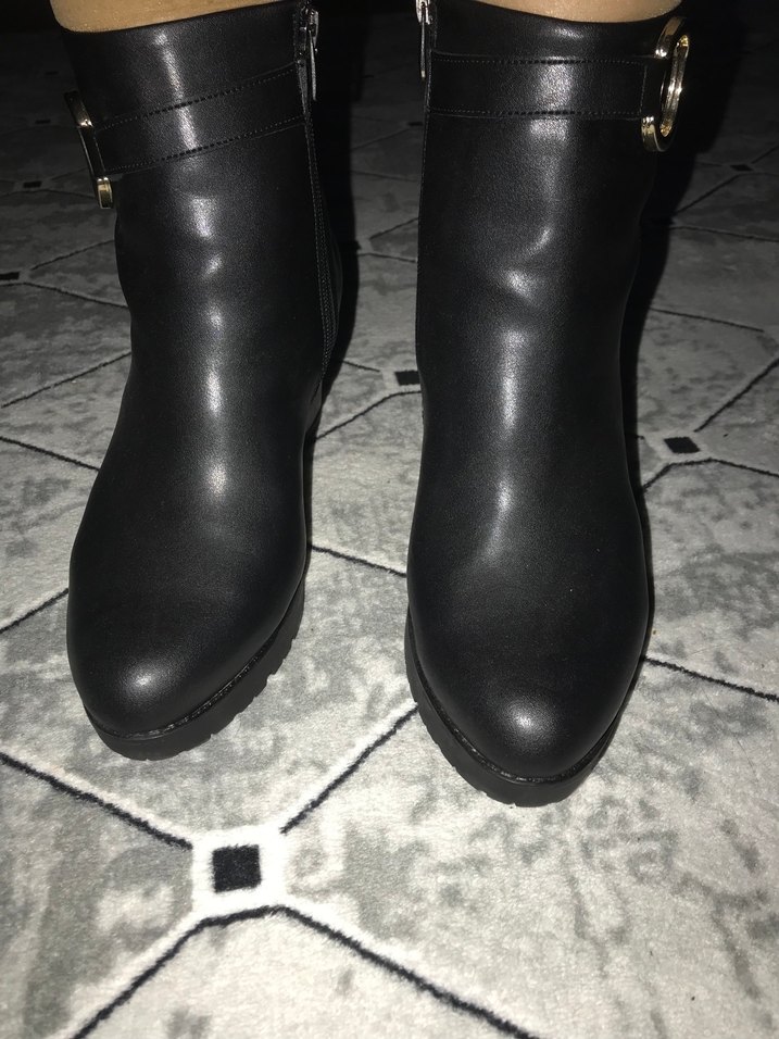 Siyah Deri Kadın Botlar Tokalı Topuklu