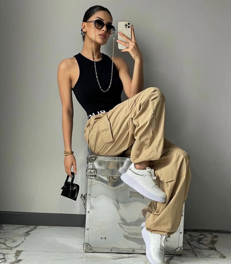 Günlük kullanım için rahat ve şık, hafif siyah deri kadın boyfriend pantolon, bol kesim ve midi boyda. 250j