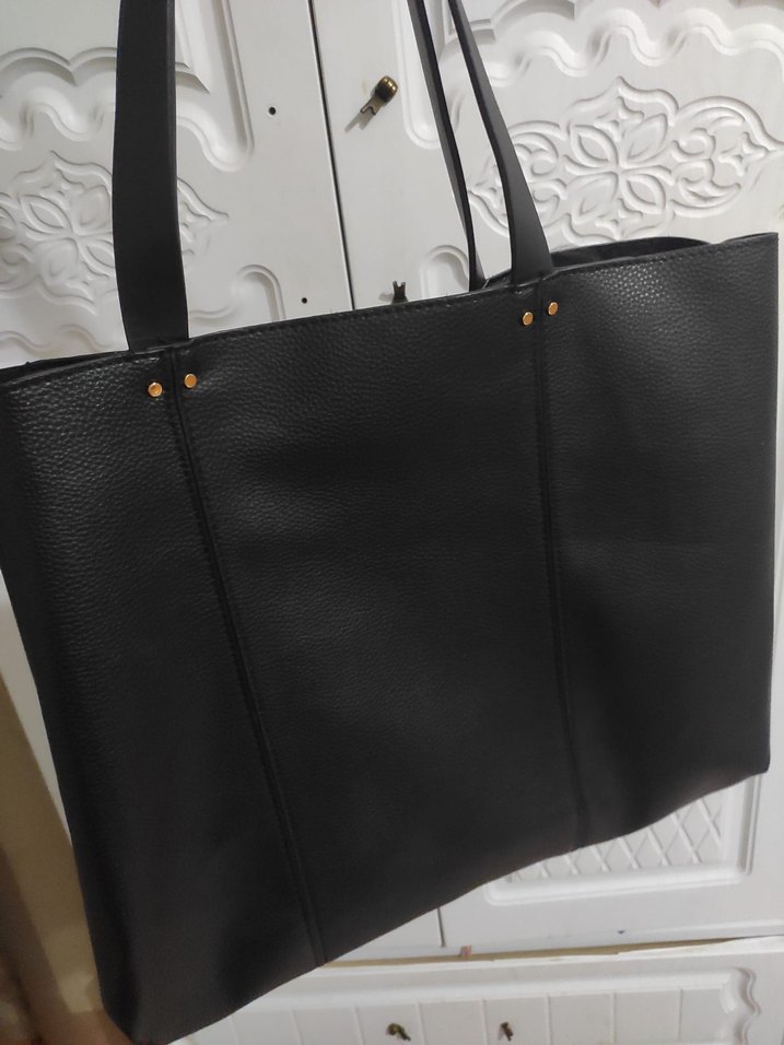 Siyah deri kadın çanta, fermuarlı ve sade, çağdaş tasarımıyla günlük iş kullanımı için uygundur.