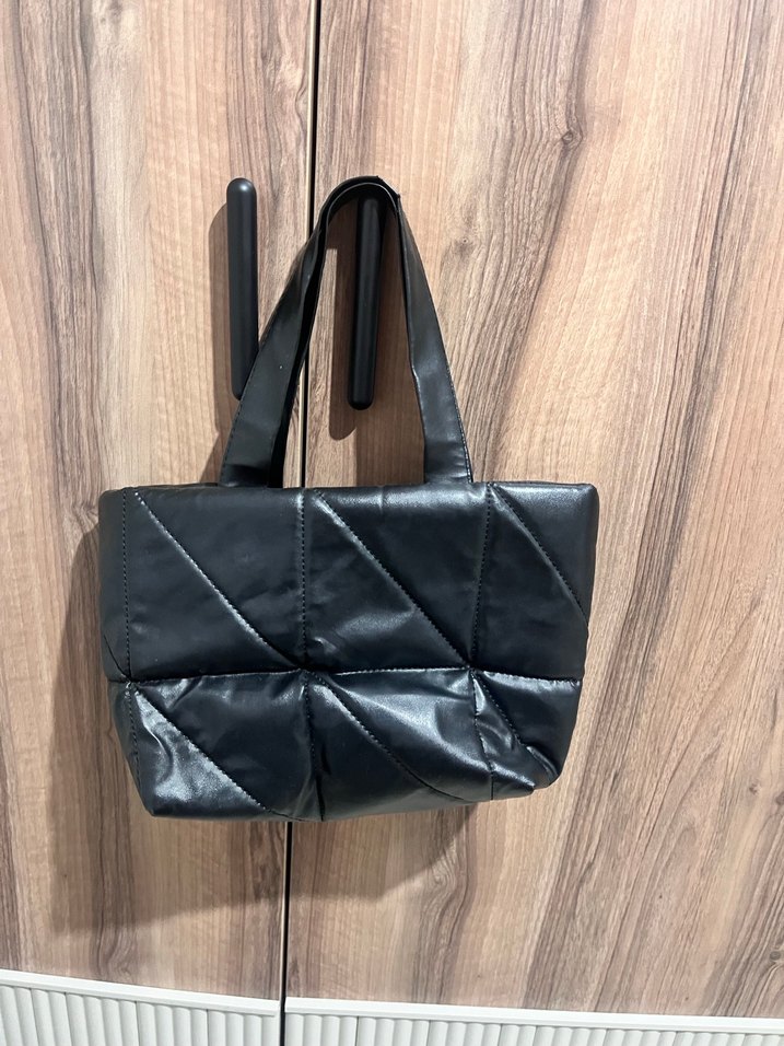 siyah deri kadın çanta, minimalist ve çağdaş tasarıma sahip, günlük kullanıma uygun.