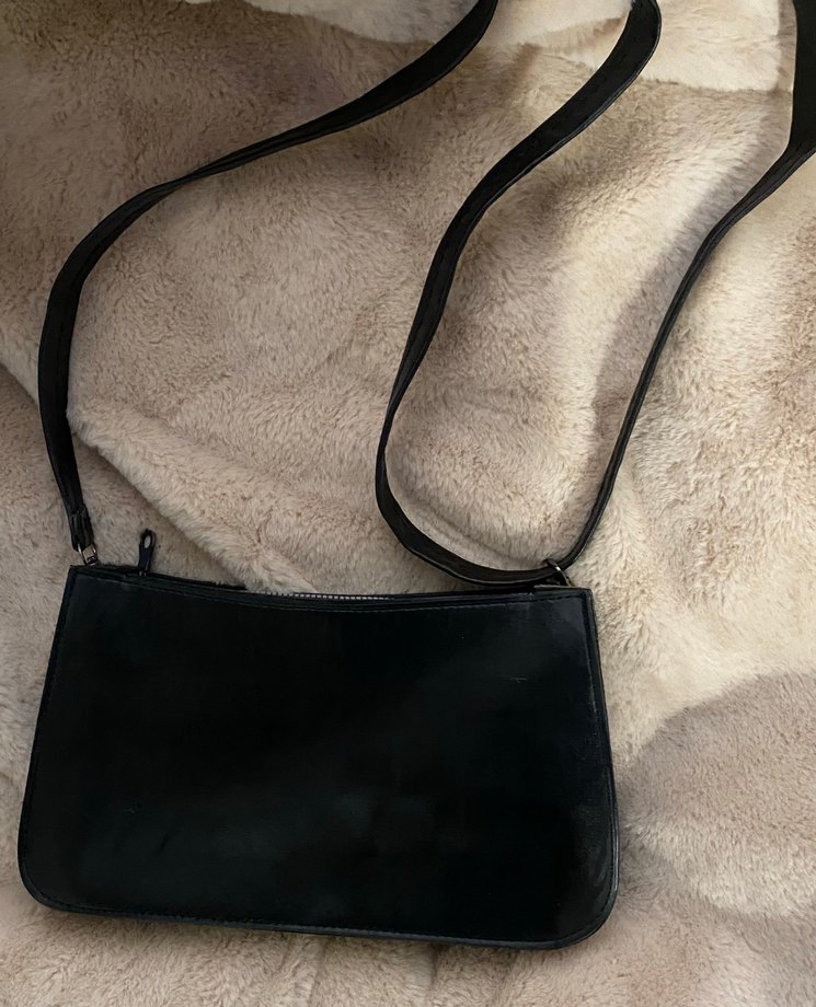 Siyah deri kadın çanta, minimalist goth tarzıyla sade ve desensizdir. Günlük kullanım için zahmetsiz şıklık sunar.