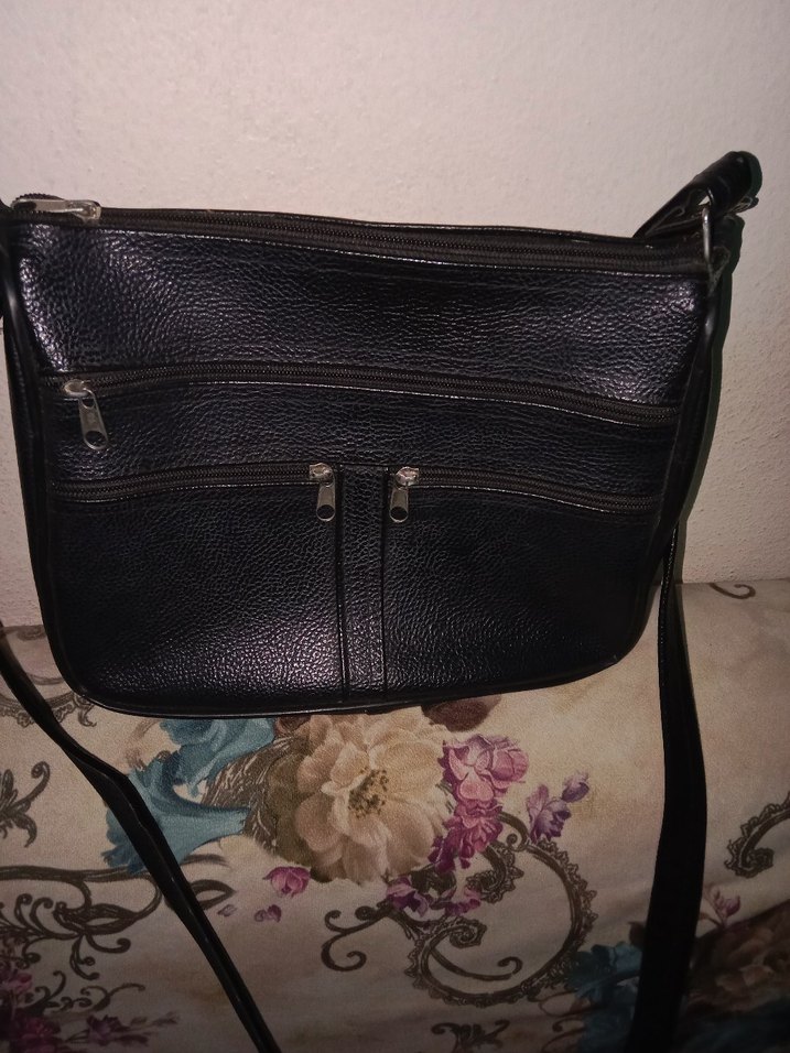 Siyah deri, tokalı kadın çantası, çoklu fermuarlı bölmeler içerir. Minimalist, trend sokak stili için uygundur, günlük kullanım için ideal.