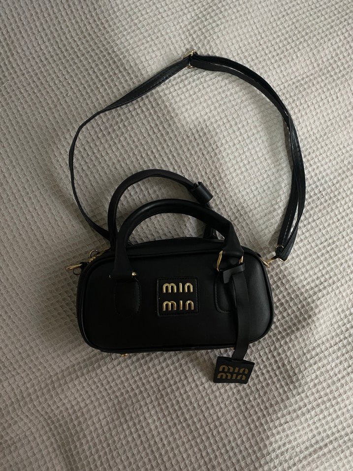Siyah deri kadın çanta, tokalı askı ve minimal gotik tarzıyla dikkat çeker. Baskılı detaylarıyla günlük kullanıma uygundur.