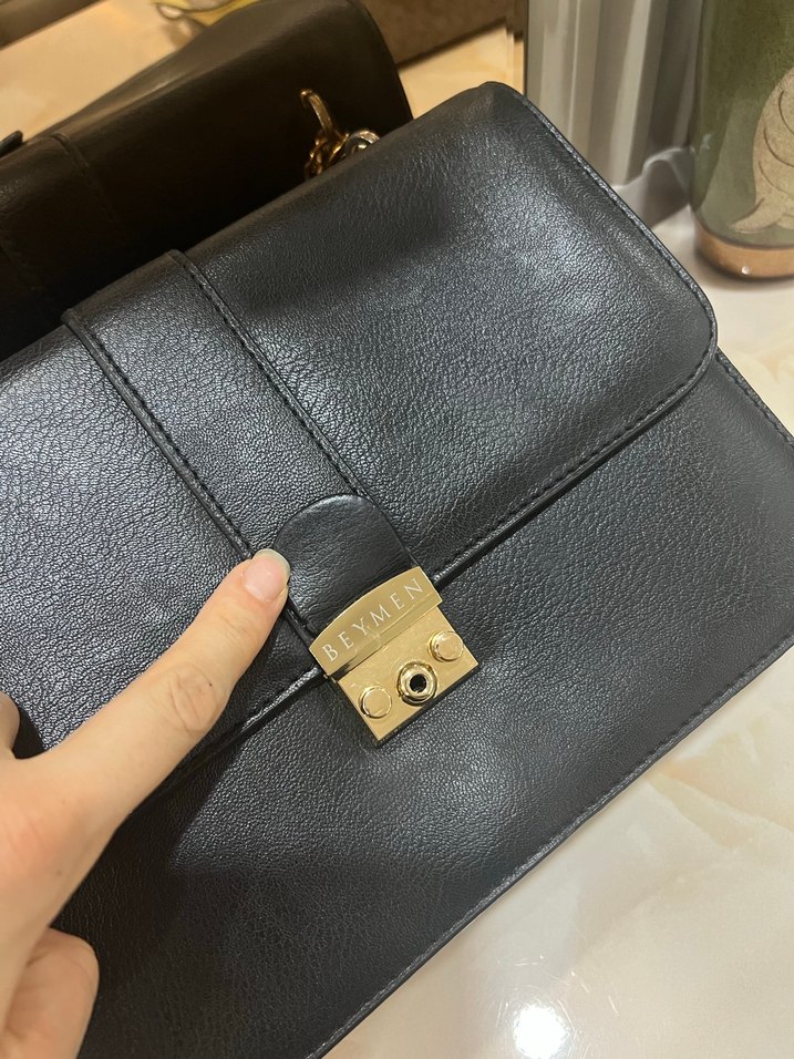 Parlak siyah deri kadın çanta, tokalı kapama detaylı, modern klasik Paris tarzını yansıtan günlük kullanıma uygun çanta. ✨