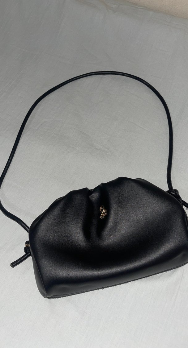 Siyah deri, minimal yılan deseniyle kadın çanta. Tokalı detay ve ince omuz askısıyla günlük ve sokak stiline uygun.