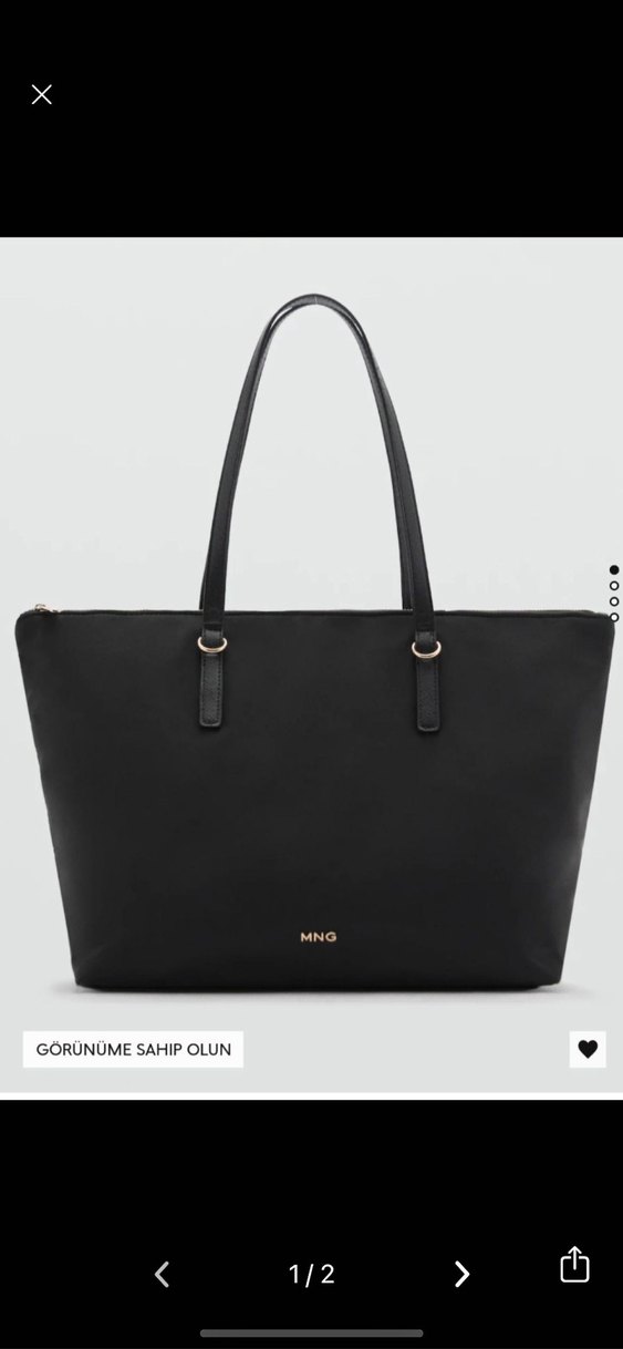Siyah deri kadın çanta, fermuarlı üst kısmı ve ofis için uygun minimal tasarımıyla dikkat çekiyor. Düz yüzeyi ve MNG logosu bulunur.