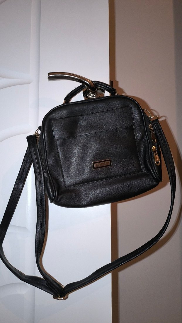 Siyah Deri Kadın Çanta Tokalı