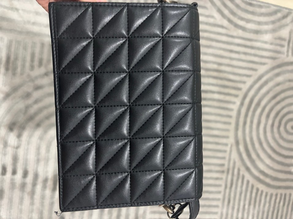 Siyah deri, tokalı detaylı kadın çantası, minimal ve dokulu desensiz tasarıma sahiptir. Günlük kullanım için şık ve trend bir seçim.
