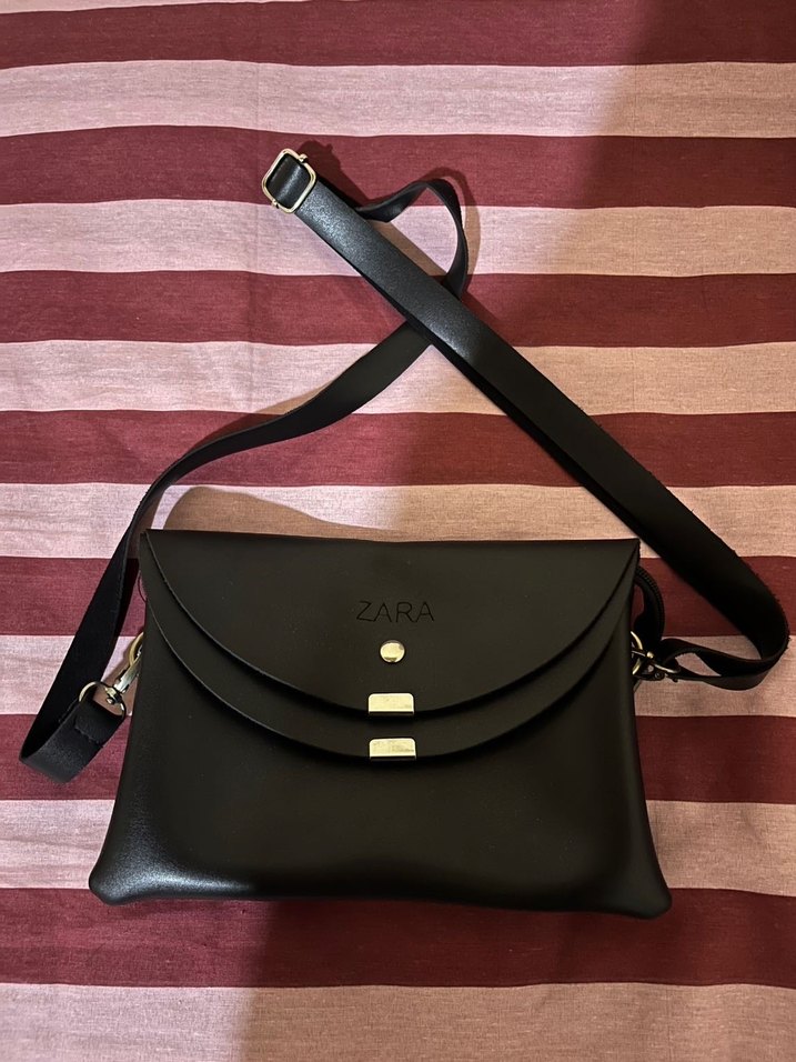 Siyah Deri Kadın Çanta - Zara - Görsel 1