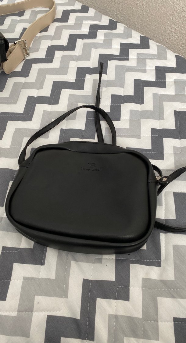 Siyah deri çapraz askılı çanta, tokalı kayış ve desensiz şık tasarıma sahiptir. Paris tarzı ve gündelik sokak modasına uygundur.