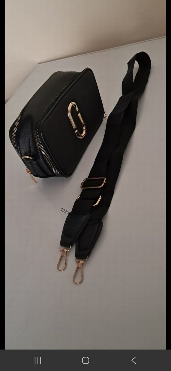 Siyah deri çapraz çanta, tokalı askısı ve sade tasarımıyla günlük kullanım için uygundur.