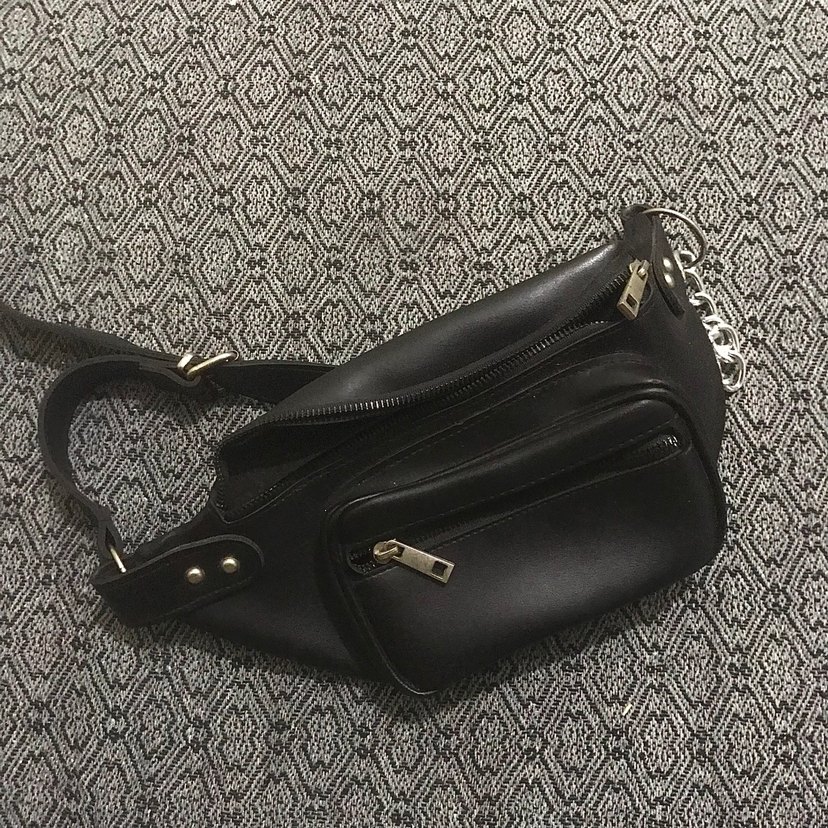 Siyah, tokalı deri çapraz çanta, günlük sokak stili için uygun.