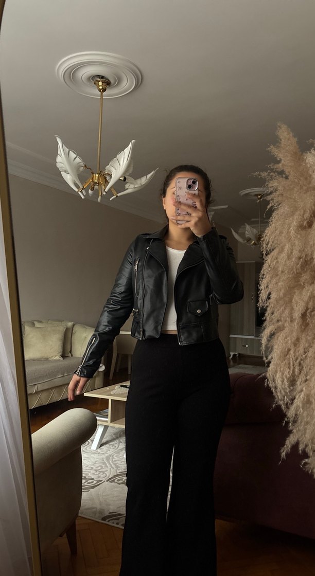 Siyah Deri Kadın Ceket