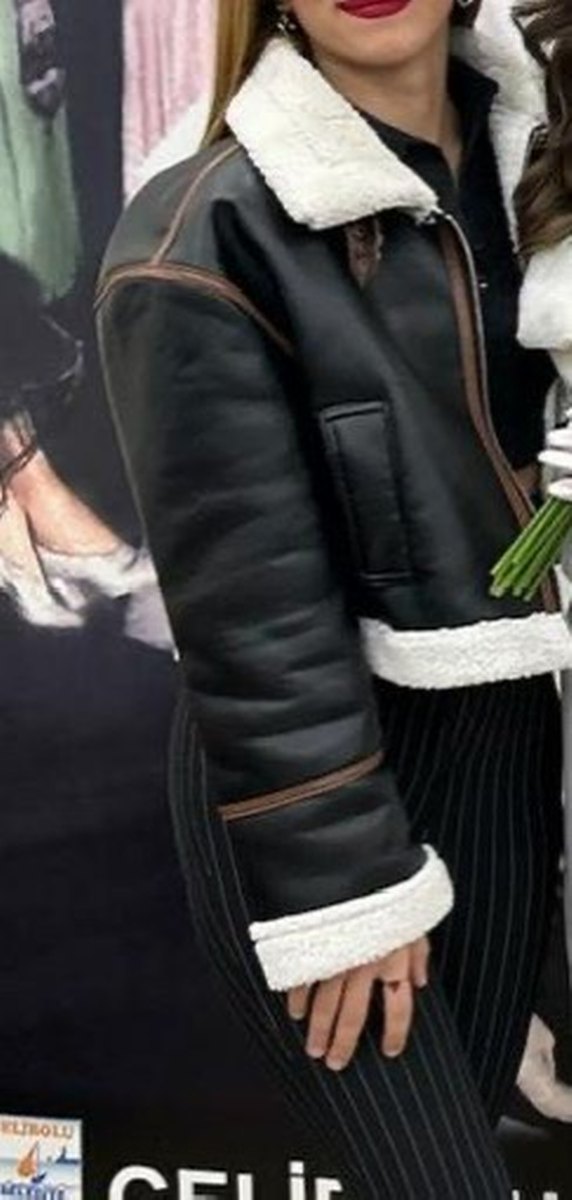 Kürklü detaylı, siyah deri, normal uzunlukta midi kesim ve çentikli yakalı, dar kesim kadın ceket. Sokak modasına uygun, trend şıklık sağlar. 4 kez giyildi. Hiçbir sorunu yoktur.
