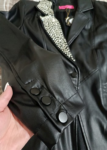 Yeni etiketli özel tasarım taşlı şık bir ceket