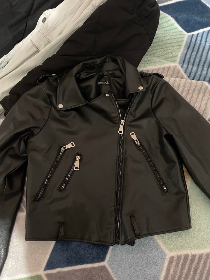 Siyah Deri Kadın Ceket Fermuarlı