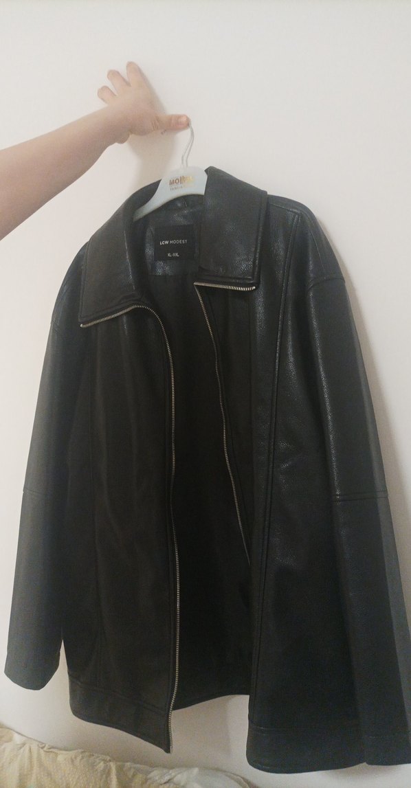Siyah deri, çıtçıtlı ve uzun kollu kadın ceket. Normal boyda, günlük sokak stili için uygun, rahat kesim. Max 1 kere kullanıldı