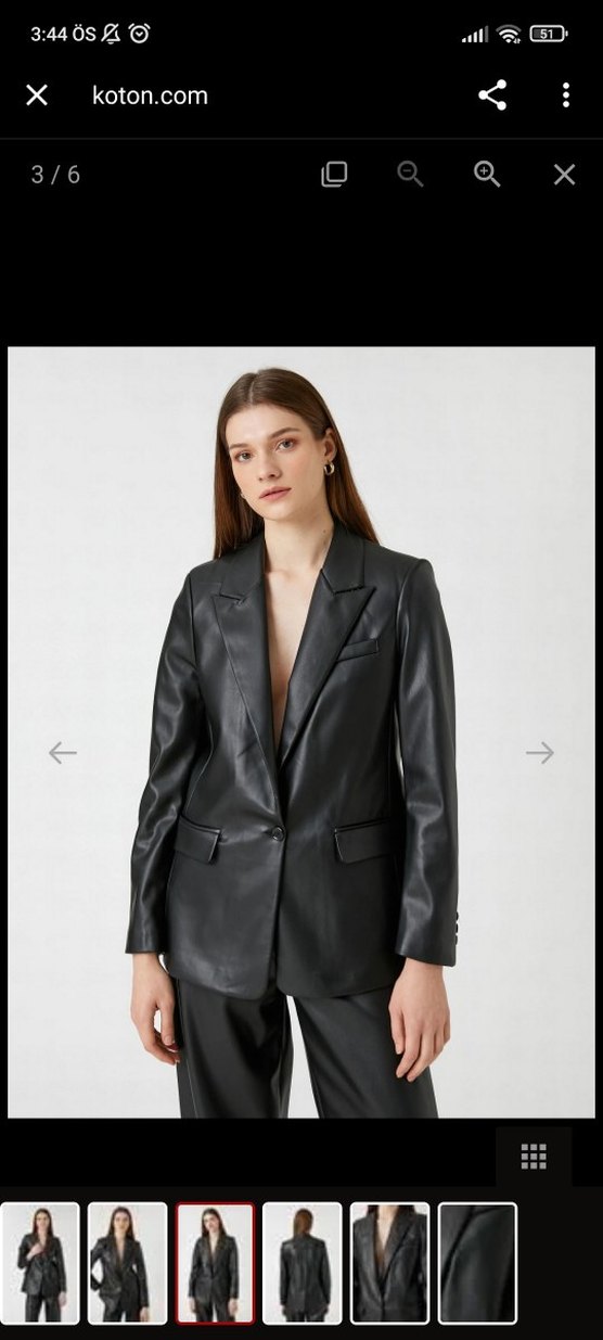 Siyah deri, notç yaka ve uzun kollu kadın ceket. Regular fit ve midi boyda, iş ve günlük şıklık için uygun.