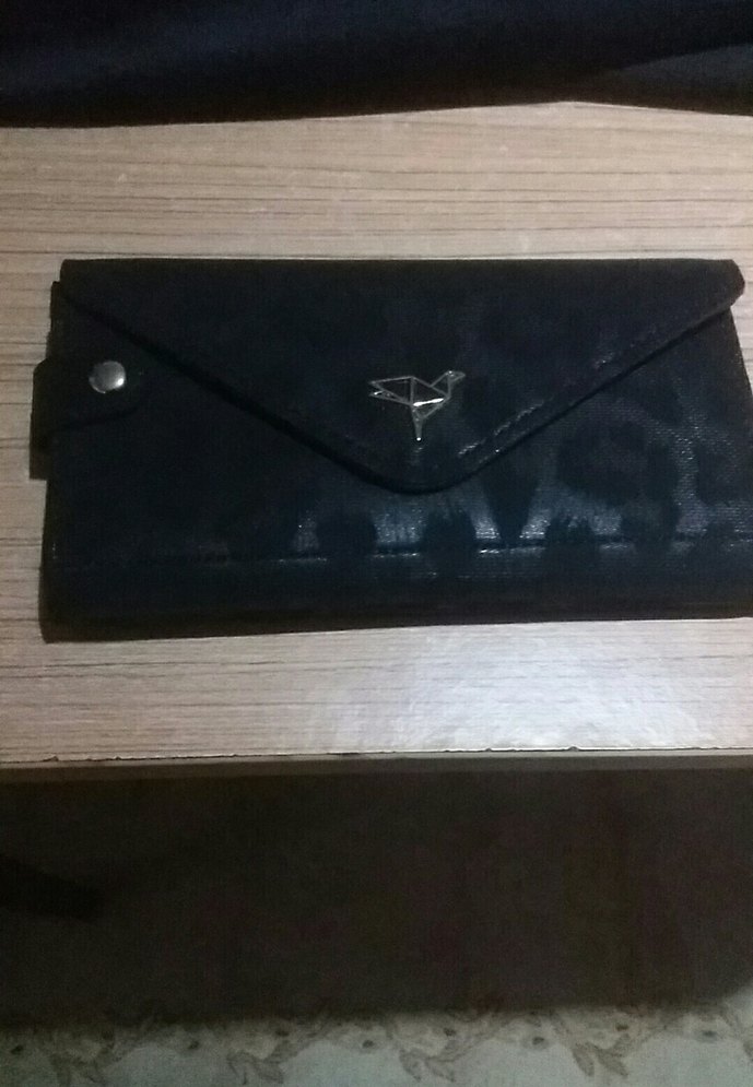 Siyah Deri Kadın Clutch Cüzdan