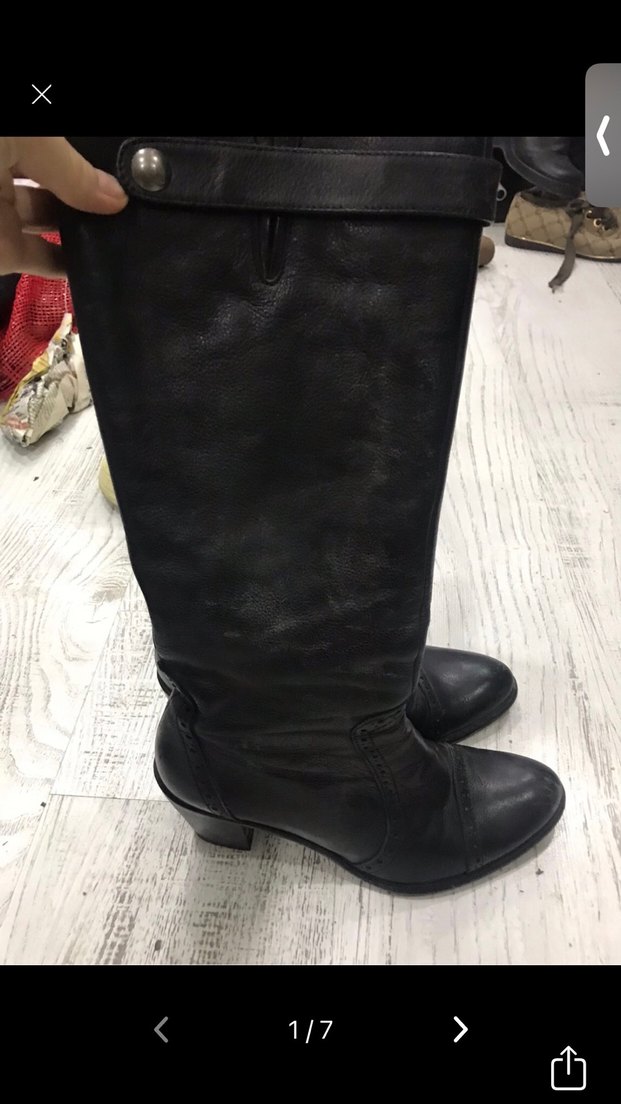 Siyah deri, dizüstü, tokalı ve blok topuklu botlar. Düz tasarımıyla gotik ve trend görünüme uygundur.
