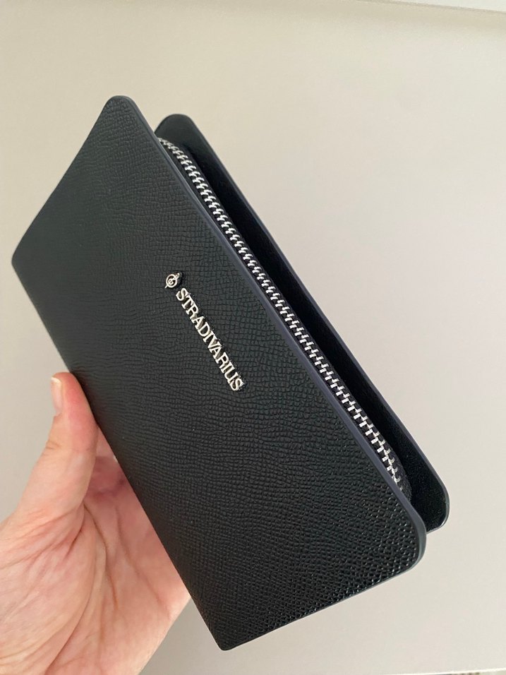 Siyah deri fermuarlı kadın cüzdanı, günlük kullanım için uygundur. Düz ve sade tasarımı genç iş ve sokak stiliyle uyumludur.
