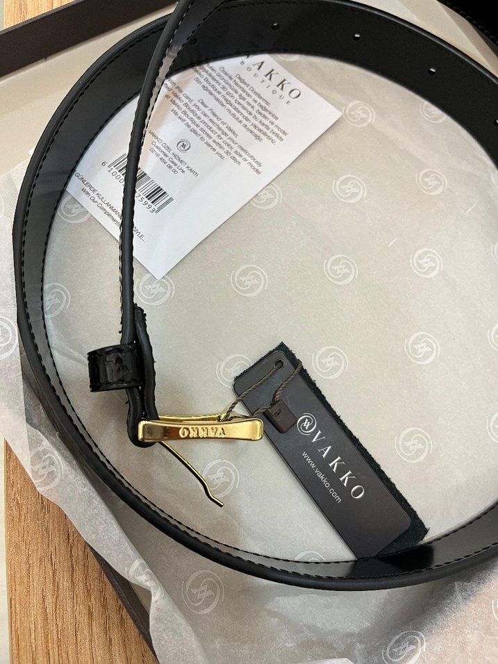VAKKO markalı siyah deri kadın kemer, tokalı tasarımıyla klasik şıklığı sokak modasıyla buluşturuyor. İş hayatı ve günlük kullanıma uygun.