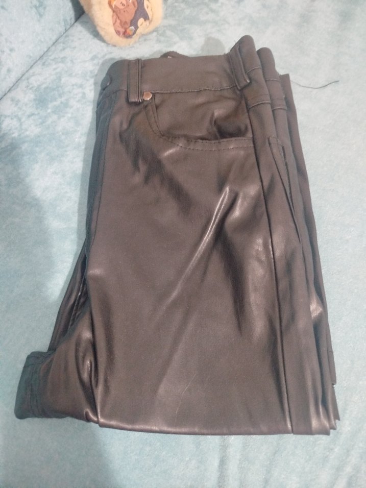 siyah deri, midi boy ve kemerli detaylı, dar kesim kadın pantolon, trend sokak stili için uygundur.