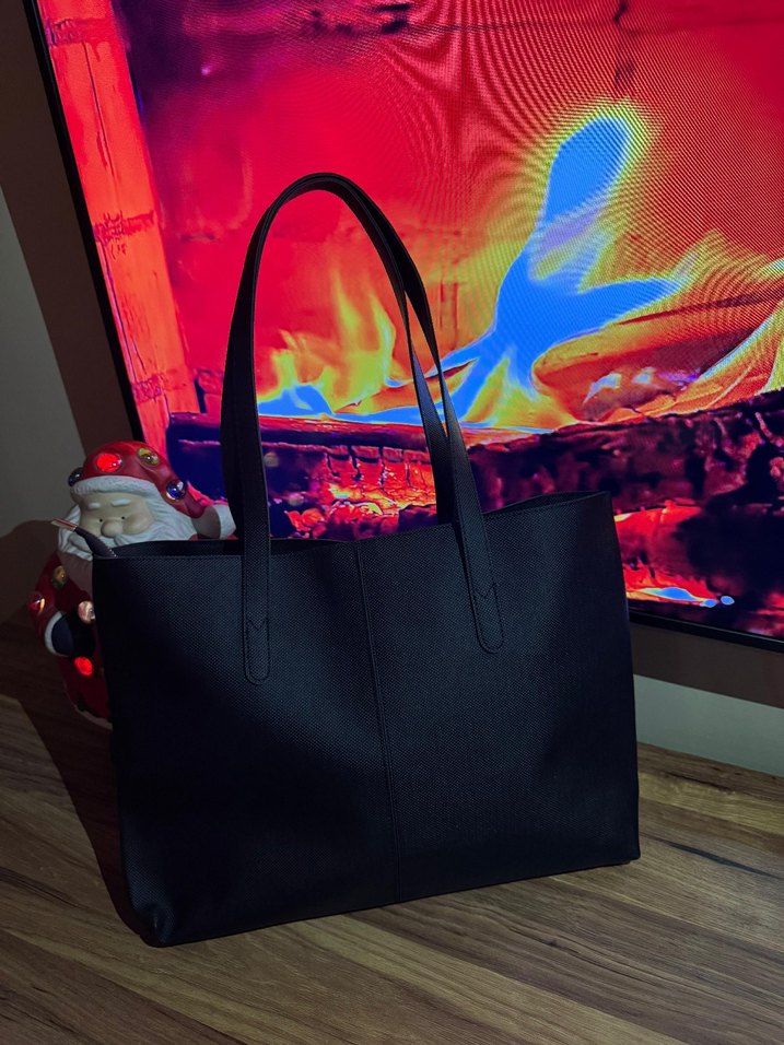 Siyah deri kadın omuz çantası, baskılı desenli ve uzun saplıdır. Günlük kullanım ve iş stili için zahmetsiz şıklık sunar.