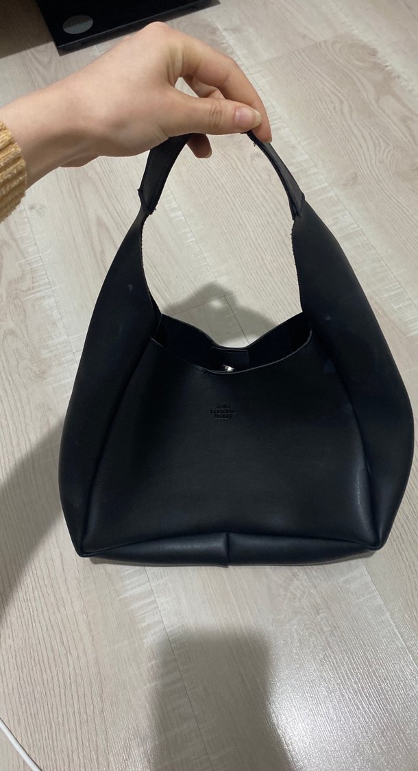Siyah deri kadın omuz çantası, minimal tasarımlı ve tokalı detaylıdır. Günlük kullanıma uygun, desen içermeyen şık ve sade bir modeldir.
