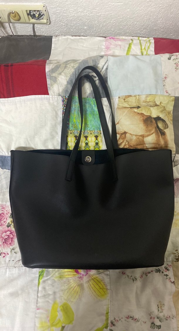 Siyah deri ve baskılı desene sahip, fermuarlı kapanışlı kadın omuz çantasıdır. Paris sokak modası tarzını günlük kullanıma uygun şekilde yansıtır.