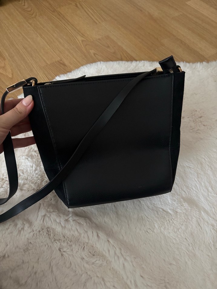 Siyah deri kadın omuz çantası, desen içermeyen sade tasarımı ve sokak modası stilini bir araya getirir. Günlük kullanıma uygun, zahmetsiz şıklık sunar.