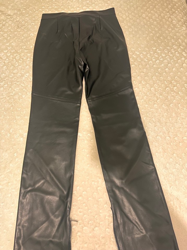 siyah deri, fermuar detaylı, normal boy midi kadın pantolon, ofis ve sokak stiline uygun, dar kesim.