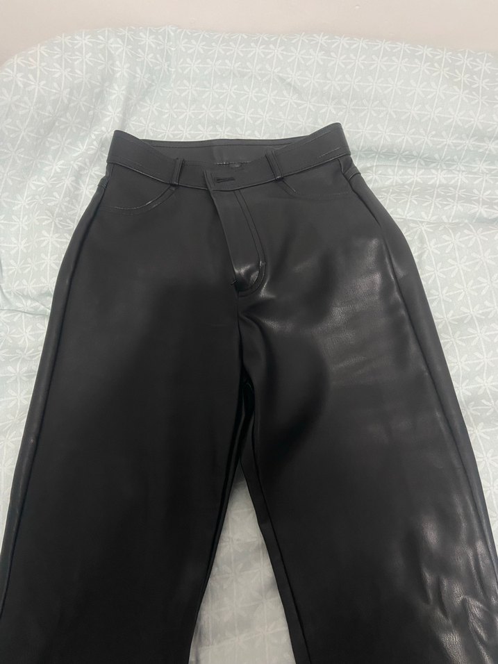 Siyah Deri Kadın Pantolon STRADİVARİUS