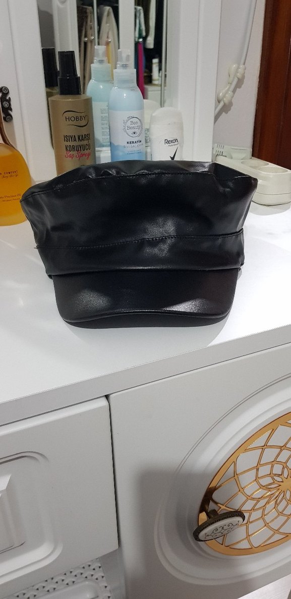 Siyah deri kadın şapka, Parisli karşı kültür stilinden ilham alan koyu ve şık tasarım. Hijyen amaçlı değişim ve iade yoktur.