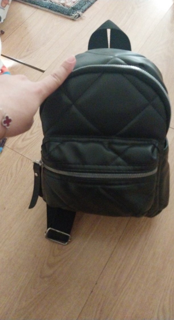 Kilitli kayışlara sahip siyah deri sırt çantası, minimalist tasarımıyla günlük kullanıma uygundur. bir iki kere kullanildi
