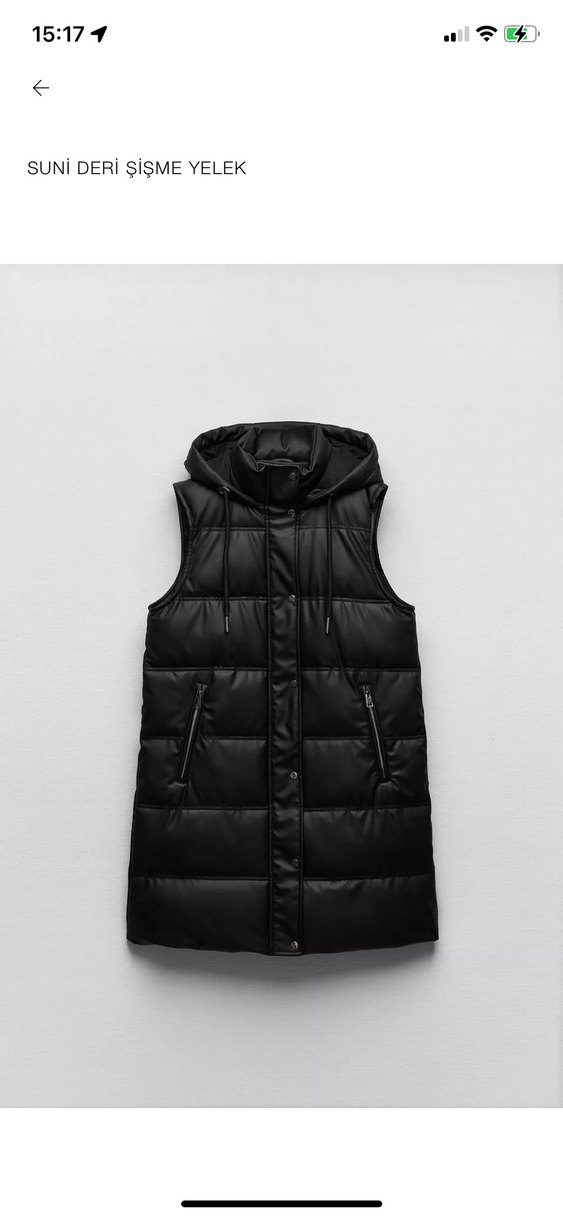 Fitted kesim, yüksek yakalı siyah deri şişme yelek, ve günlük kullanıma uygun minimalist sokak stili sunar.