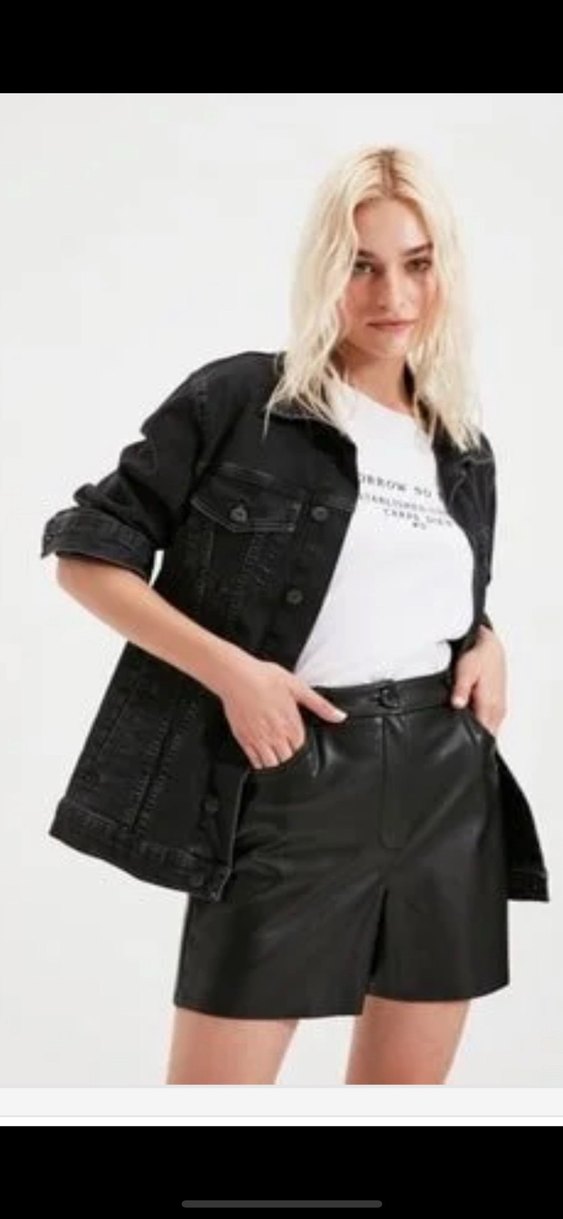 Siyah deri şort.