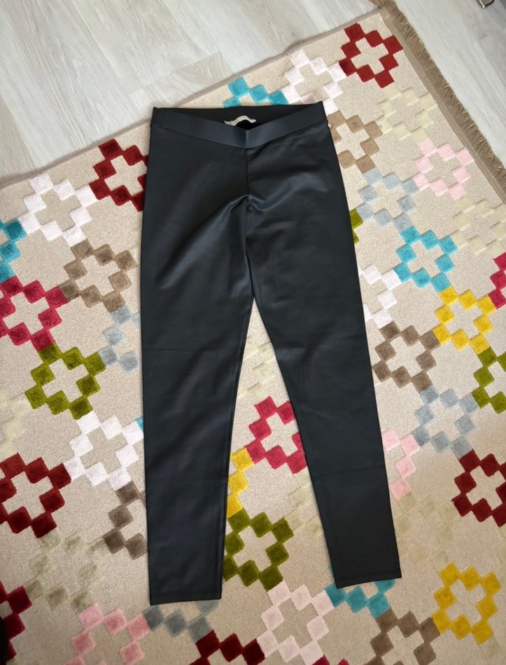 Siyah Deri Kadın Tayt