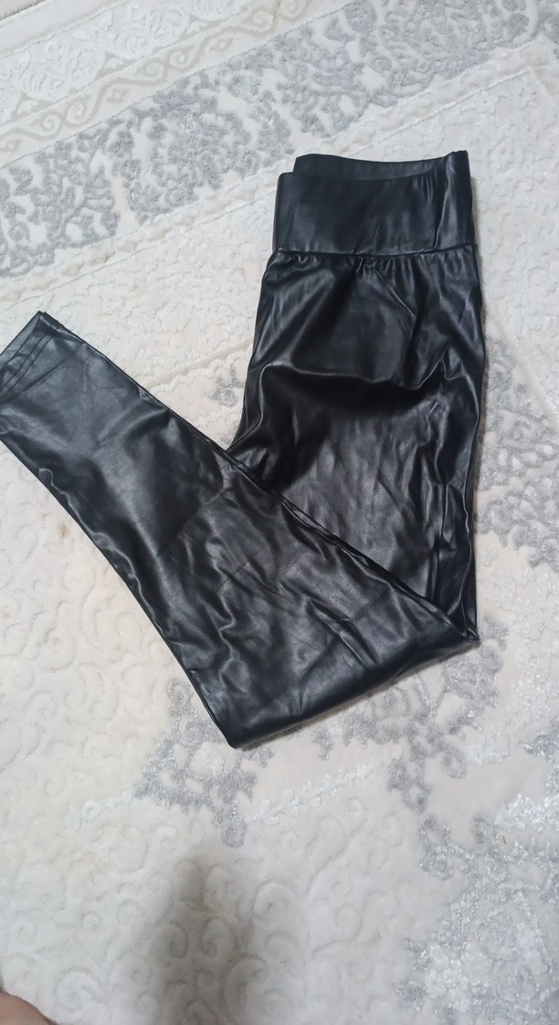 Siyah Deri Kadın Tayt