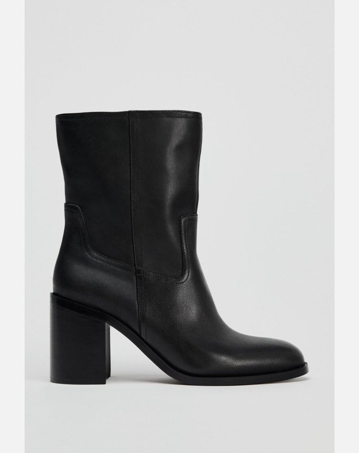 Siyah deri kadın botu, blok topuklu ve minimalist çağdaş tasarıma sahip. Günlük kullanımda zahmetsiz şıklık ve cesur stil sunar. Zara Deri Yüksek Kalın Topuklu Bilek bot ,çizme hakiki deridir etiketli kutuludur , mağazadan alınmış gibi gçnderilecektir , ayakkabı torbasında kutusunda jelatininde