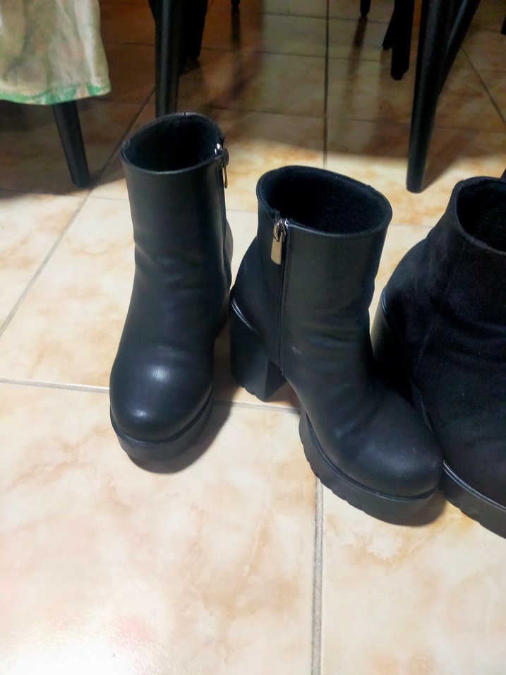 Siyah deri, tok topuklu ve tokalı kadın botları. Minimalist gotik tarzda, günlük kullanıma uygun rahat ve trend.ikisinin fiyati