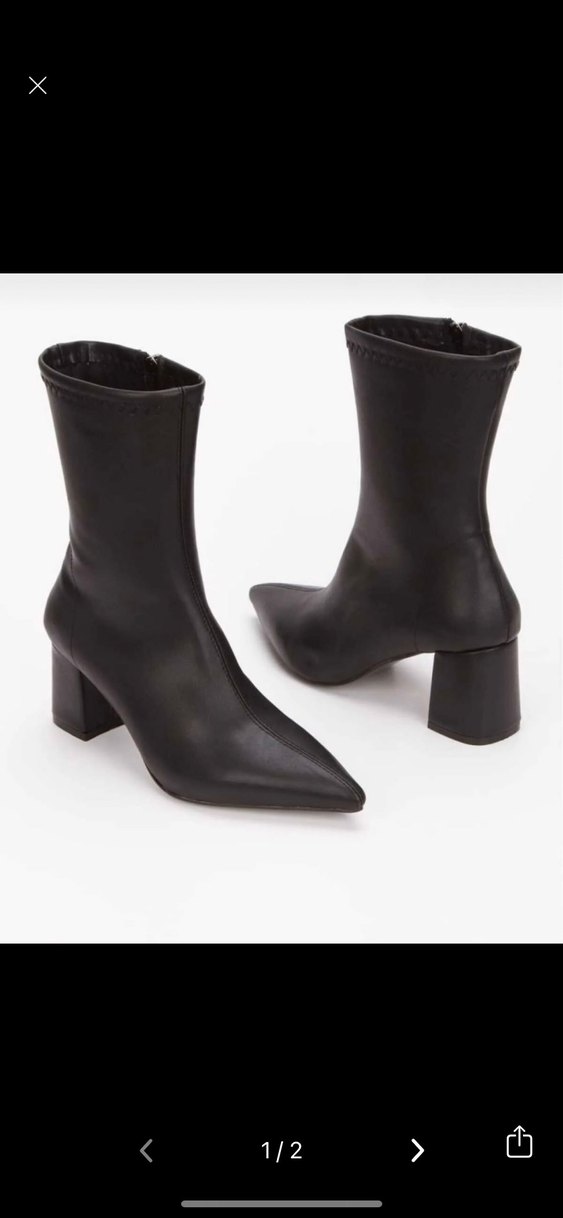 Siyah deri, blok topuklu kadın botları, desen içermeyen şık tasarım. Gotik tarzda, Parisli avant-garde dokunuşlu, ofis için uygun rahat şıklık sunar. Ürün sadece 1 kere davet için giyildi defosu yoktur