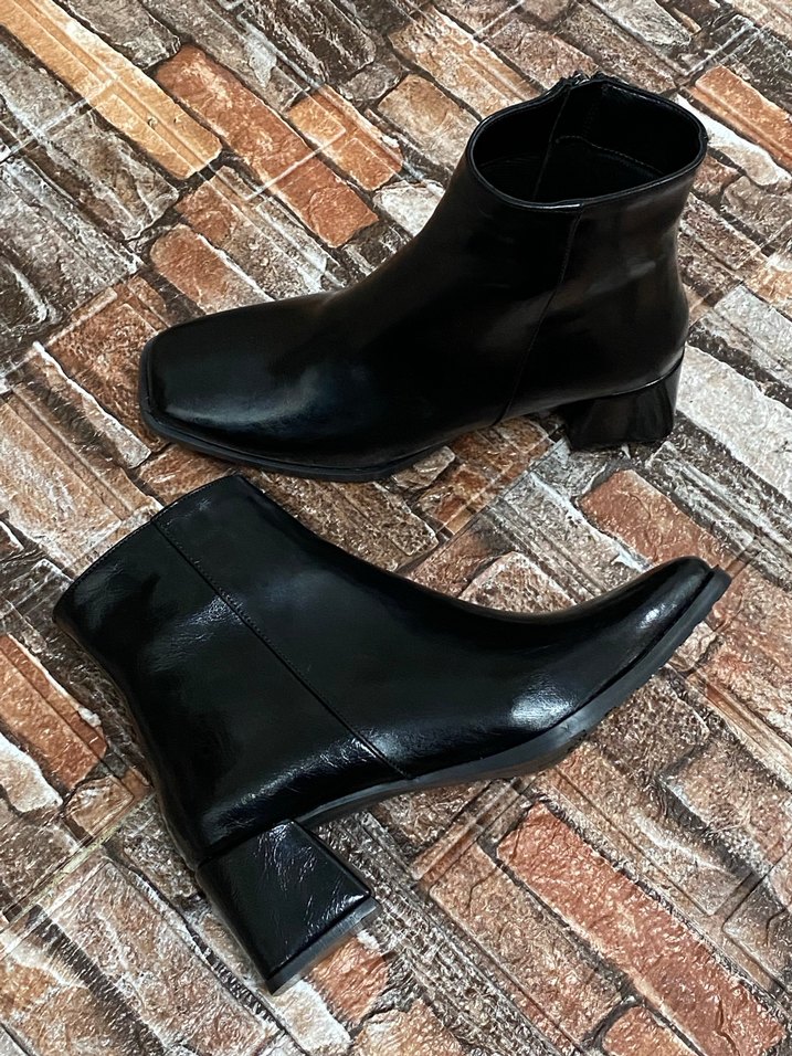 Siyah Deri Kadın Topuklu Bot