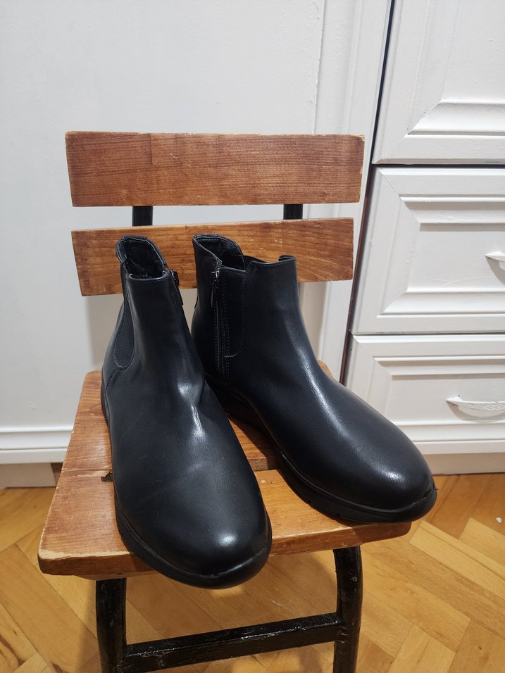 Siyah deri, tok topuklu ve tokalı detaylara sahip kadın botları. Minimalist goth tarzında, ofis kullanımı için uygun.