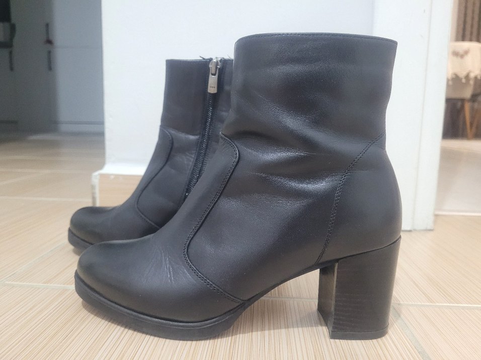 Siyah Deri Kadın Topuklu Bot