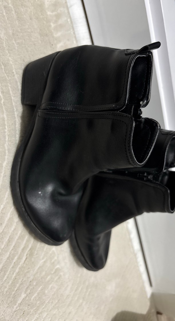 Siyah deri, tok topuklu, tokalı detaylı kadın botu, günlük kullanım için gotik tarzda.
