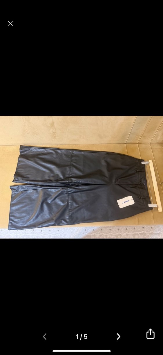 Siyah deri uzun pantolon, kemerli ve regular fit olup sokak giyimi ve dış mekan kullanımı için uygundur. Kadın suni deri pantolon, satın alındı ancak hiç giyilmedi, beden 36/38